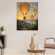 This modern impressionist artwork depicts a serene landscape with hot air balloons floating through warm, glowing skies. Loose brushstrokes and rich textures create a sense of elevation and calm, turning the countryside into an atmospheric travel scene. Designed as wall art for interiors drawn to impressionist style and luminous landscapes.