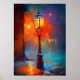 Impressionist Street Lamp Night City Painting Poster