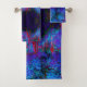 Colourful Bath Towel Set featuring an Impressionistic Dark Blue and Red Garden Landscape with Pink, Magenta, Aqua, Black and Crimson Accents. The result is a colourful, abstract, floral painting that you will love!