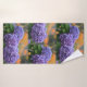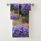 This bath towel set features an impressionistic rendition of purple hydrangeas growing by a seaside cottage. Gorgeous colours!