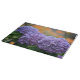 This glass cutting board features purple hydrangea blossoms with an impressionistic flair.