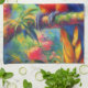Impressionistic Tropical Parrot Bird Blue Green Tea Towel