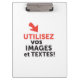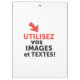 Utilise l'éditeur en ligne pour uploader vos images. Vous pouvez aussi ajouter votre propre texte et choisir le format ainsi que les styles de textes! Un très grand choix de polices. Suporte images en png, jpg, ai et pdf. Une fois vos design uploadé, nous ferrons l'impression pour vous et le colis sera envoyé par la poste dans un délai rapide.