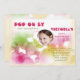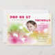 Lots of bubbles in green, pink and yellow with one open bubble in the middle for your favourite photo. A happy invitation that's perfect for a birthday.