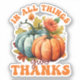 Embrace autumn's charm with this whimsical design featuring vibrant pumpkins and the witty phrase "In all things give thanks." Perfect for Thanksgiving or fall decor, it adds humour and warmth, reminding you to celebrate gratitude with a smile. Ideal for adding a playful touch to your seasonal decorations!