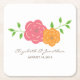 Simple and classic In Bloom Floral Wedding Paper Coasters featuring an illustration with a lovely pair of flowers in red and orange flanked by an array of vibrant green vines. These elegant wedding coasters are perfect for a spring or summer wedding. Easy to customise, simply add your wedding details in the text fields provided. Click "Customise It" to find more personalisation options.