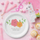 Simple and sweet In Bloom Floral Wedding Paper Plates featuring an illustration with a lovely pair of flowers in red and orange flanked by an array of vibrant green vines. These elegant wedding plates are perfect for a spring or summer wedding. Easy to customise, simply add your wedding details in the text fields provided. Click "Customise It" to find more personalisation options.