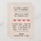 Sometimes words are hard to find. This Valentine's Day card bridges the gap for those who have trouble communicating their deep emotions. With the message "In Case I Don't Say it Enough, Here's a Card to Remind You: I Love You. You're Sexy. I'm Proud of You. I Believe In You. I'm Sorry," this card leaves no room for doubt about your love and appreciation. A perfect gift for your husband, boyfriend, girlfriend, or partner.
