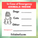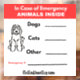 In Case of Emergency- Animals Inside Window Cling