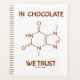 Chocolate chemical attitude is alive and well on this planner featuring the theobromine molecule, the active ingredient in chocolate, along with the saying that all chocoholics will know and enjoy: "In Chocolate We Trust". Memorable biochemistry geek humour planner for any chocolate fan!