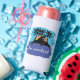 Show you are in control of your day with this statement piece of man surfing onboard a shark with the sun and palm trees in the background.