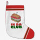 Ideal for holiday decorating! Christmas stocking features an original marker illustration of a turkey club sandwich, with IN DA CLUB in a fun font.