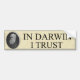 BUMPER STICKER WITH A PICTURE OF CHARLES DARWIN AND SAYS "IN DARWIN I TRUST" IN A RICHLY TEXTURED 3D EFFECT DESIGN.