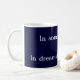 A white and dark blue mug with a quote in both latin and english. "In dreams there is truth". I just found it oddly sweet.