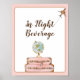 Cute 'travel themed 'Travelling from Miss to Mrs' bridal shower sign featuring hand painted watercolor globe and travel suitcases.