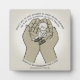 Little Boy is seen sitting in a pair of large hands, God’s hands, putting on a pair of shoes that are too large for his feet. The quote of David A. Carrizales illustrated here by Christie Black is “Don’t try to put yourself in their shoes, instead let’s all put ourselves in God’s Hands”.