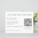 The purposes of using a QR code on an "in lieu of favours card" can vary depending on your specific intentions and goals. Here are some common purposes for using a QR code in this context: