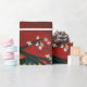 Painting with birds couple, nest and blossomed tree on a beautiful sunset background on a wrapping paper