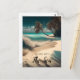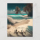 Turquoise water and palm trees on a white sandy beach postcard Quote: "In love with the sea."