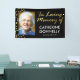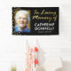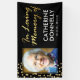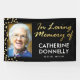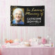 Memorial funeral banner featuring a stylish black background that can be changed to any color, a photo of your loved one, gold sparkly glitter, the words "in loving memory" in a script font in faux gold foil, the persons name, plus their birth and death date.