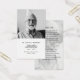 These modern prayer cards offer a touching remembrance for a loved one who has passed away, beautifully crafted to celebrate their life and spirit. Each card presents a two-sided design, with one side featuring a poignant black and white photograph of your loved one with the heartfelt editable inscription, "In loving memory," followed by their name and years of life. Below, you can add a personal message. The reverse side of the card features a poem, prayer or quote of your choice with a faded black and white photo as a background. These prayer cards have a tangible sense of permanence and respectability, making them suitable for distribution at funeral services, memorials, or as keepsakes for friends and family to cherish. The design is timeless, and the message universal, ensuring that a loved one's memory is honoured in a manner as special as their life was.