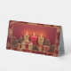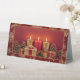 This elegant Christmas table tent sign features a heartfelt tribute to loved ones who are no longer with us. The front side of the sign displays a serene image of three lit candles surrounded by beautifully wrapped gifts and pinecones, set against a rich red background. The candles symbolise the warmth and light that our cherished memories bring to our hearts during the holiday season. On the reverse side, the same image is accompanied by the touching phrase: "In loving memory of those we hold dear, may the light of these candles bring warmth and peace to our hearts this Christmas." This design is perfect for adding a meaningful touch to your holiday decor, reminding us of the enduring presence of our loved ones.