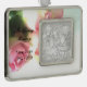 In loving memory custom photo memorial ornament. Personalised ornament with customisable picture. Personalizable elegant script text and background image. Pink rose flowers photograph image.