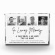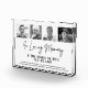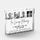 In loving memory wedding memorial acrylic block with 4 photos in black and white (a coloured option is available in the shop) and space to personalise the text and add the names or any custom message. The example reads "of those forever in our hearts today and always". White simple calligraphy design for the reception or ceremony.