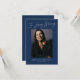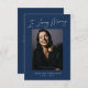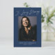 This chic minimalist memorial photo card features one vertical photo, white typography, and a navy blue background. On the back there is space for a personal message of thanks.