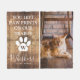 Losing a beloved cat can be a heartbreaking experience. If you're looking for a way to honour your furry friend and find solace in your grief, this rustic pet memorial fleece blanket is the perfect choice. This cosy blanket features a personalised photo of your cherished cat, set against a rustic country wood background. The touching quote, "you left paw prints on our hearts," adds a comforting touch, along with a customisable pawprint featuring your cat's initial, name, and dates. This sympathy pet loss blanket makes a meaningful keepsake for yourself, or a thoughtful gift for a friend or family member who has also experienced the loss of a beloved pet.