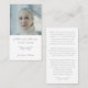 Honor a cherished life in loving memory with this elegant prayer card featuring classic script typography, elegant floral details, and space for a personal photo, name, with a heartfelt bereavement verse. A timeless memorial keepsake for funerals, celebration of life services, and remembrance gatherings, offering comfort and sympathy during times of grief and loss.You can find more elegant prayer cards in the Elegant Memorial Keepsake Prayer Card collection in The Gathering Designs store.