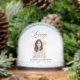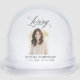 Personalise this simple elegant funeral memorial Snow Globe with the name and dates of your loved one. Modern elegant script typography on a clean white background. Perfect addition to your funeral memorial remembrance event and a keepsake for all your family and friends who came to mourn with you. Easy to customise photo and text. Our heartfelt condolences on your loss.
