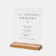 Honor the loved ones who are forever in your heart with this elegant black and white wedding memorial tabletop acrylic sign. Designed with a modern minimalist aesthetic, this In Loving Memory sign adds a meaningful and heartfelt touch to your wedding remembrance table. Customizable with your deceased loved ones names.