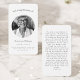 Simple elegant prayer card for a loved one's memorial and funeral service. The front features "In Loving Memory Of" and "forever in our hearts" in a mix of typography and script. Personalize with their photo, name and birth and death dates. The reverse side features a long inspirational passage ("Fill Not Your Hearts With Pain") and a shorter message, or customize with your own