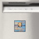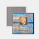 Beautiful, blue and pink sunset over water background, memorial magnet with centre photo and personalizable text. "Through-in and Through-out, your light has touched us forever. From HAMbyWhiteGlove aka HAMbyWG