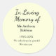 In Loving memory of name funeral memory keepsake Classic Round Sticker