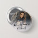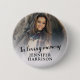A photo tribute button for friends and family to wear at a funeral, featuring a photo with white overlay, the words "in loving memory" and personalized with their name.