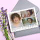 Thank your friends and family for their support during your difficult time after losing a loved one with this photo collage thank you card where you can add three photos of your loved one. In loving memory is written in the lower right corner, and your loved one's name and years living in the lower left. On the back, you can write a personal thank you note by hand.