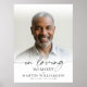In Loving Memory Photo Elegant Script Funeral Welcome Sign Poster. Honor your loved one’s memory with this elegant photo poster sign, designed as a touching tribute for a funeral, memorial service, wake or Celebration of Life event. Featuring the heartfelt sentiment IN LOVING MEMORY in an elegant script, this design beautifully frames your loved one’s photo in a white gradient along with their name and life dates in a classic black and white style. OPTIONS: The sample is shown in a 18x24" size on Value Paper (Matte)--other sizes and paper quality or canvas, Digital Download file for local printing or to transfer the design to another product like a foam board, banner, tapestry, etc. are available on the ordering page. RESIZING TIP: Use the CHOOSE YOUR SIZE section below "Standard Sizes" if uneven borders occur and click the UNLOCK icon first (looks like a chain link) before entering the new width and height dimensions. Adjust the new dimensions proportionally by adding or subtracting approximately the same number of inches on both from the original size (you may have to adjust incrementally to achieve equal outside borders).