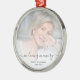 Commemorate a loved one this holiday season with this photo keepsake ornament. The charcoal grey text reads "In loving memory" in handwriting script with decorative swashes at the beginning and end. Easily replace the sample image with your favourite photo, and add their name and dates below. A white gradient screen helps bring out the text overlay.