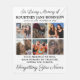 Personalized memorial tribute fleece blanket featuring 6 precious photos of your lost loved one, the text "in loving memory", their name, birth/death dates, and the remembrance saying "your presence we miss, your memory we treasure, loving you always, forgetting you never".