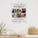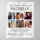 Memorial poster featuring a modern marble background, 6 precious pictures of your lost loved one, the text "in loving memory of", their name, birth/death dates, and the sympathy quote "your presence we miss, your memory we treasure, loving you always, forgetting you never".