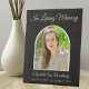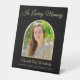 This lovely pedestal sign makes a beautiful additional to a funeral or celebration of life table. The design features your photo on a black backdrop in an arch with a golden frame. You can customise the design with dates and name. Copyright Sympathy Thank You by Kathy Henis