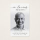Keep the memory of a loved one close with this custom personalized prayer card featuring one treasured photo, the sentiment IN LOVING MEMORY, name and dates and an editable heartfelt remembrance message. With its simple yet elegant classic black and white design and modern handwritten typography, it makes a meaningful keepsake to share at a funeral, memorial service or Celebration of Life and offers comfort and a lasting tribute for family and friends. The sample shows a B&W photo--if uploading a color photo, you can use the B&W filter in the EDIT menu. Its small and portable size of 3.5x2" (wallet-sized) makes it convenient for loved ones to carry it with them as a reminder of your loved one’s life and spirit. Personalization makes each card unique.