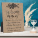 This product is the perfect size for our dessert table at our wedding. What’s even better is the easel on the back so it stands up on its own. The printing was just like the picture. Great quality. I highly recommend this product!
