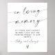 Honour cherished memories with our Minimalist In Loving Memory Sign. With its clean and simple design, this sign serves as a gentle reminder of those who are deeply missed. Pay tribute to loved ones in a tasteful and understated manner, seamlessly blending with your minimalist wedding decor. Keep their spirit alive throughout your special day with our heartfelt In Loving Memory sign. Easily modify the colours to match your theme by clicking the blue 'Edit using design tool' button in the personalisation section.