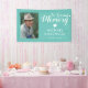 Memorial funeral banner featuring a teal background that can be changed to any colour, a photo of your lost loved one, and a "in loving memory" template that is easy to personalise.