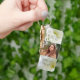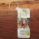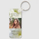 White colour is associated with light, goodness, heaven, beginnings, etc. This floral background adds a beautiful and meaningful detail to this keychain. Replace sample text and photos with your loved one picture and details.