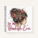 Charming illustration featuring a woman with her hair in a bun and flowers in her hair. Inside her head we see a tall bookcase full of books. There is a woman climbing a ladder to reach the books. The colourful text reads: "In my bookish era". This design is available on a wide variety of products.