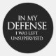 In My Defence I Was Left Unsupervised Funny Classic Round Sticker